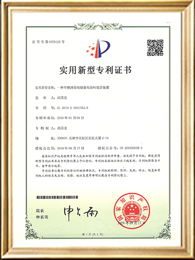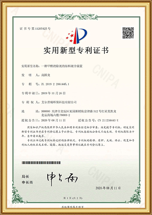 • 實(shí)用新型專利證書(一種甲醛清除劑的原料混合