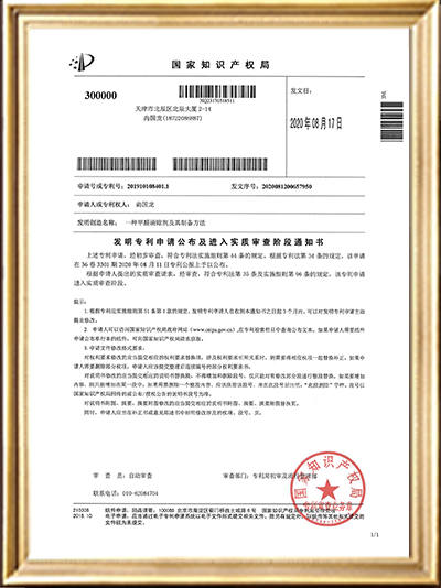 • 實(shí)用新型專利證書(一種甲醛清除劑的原料加載